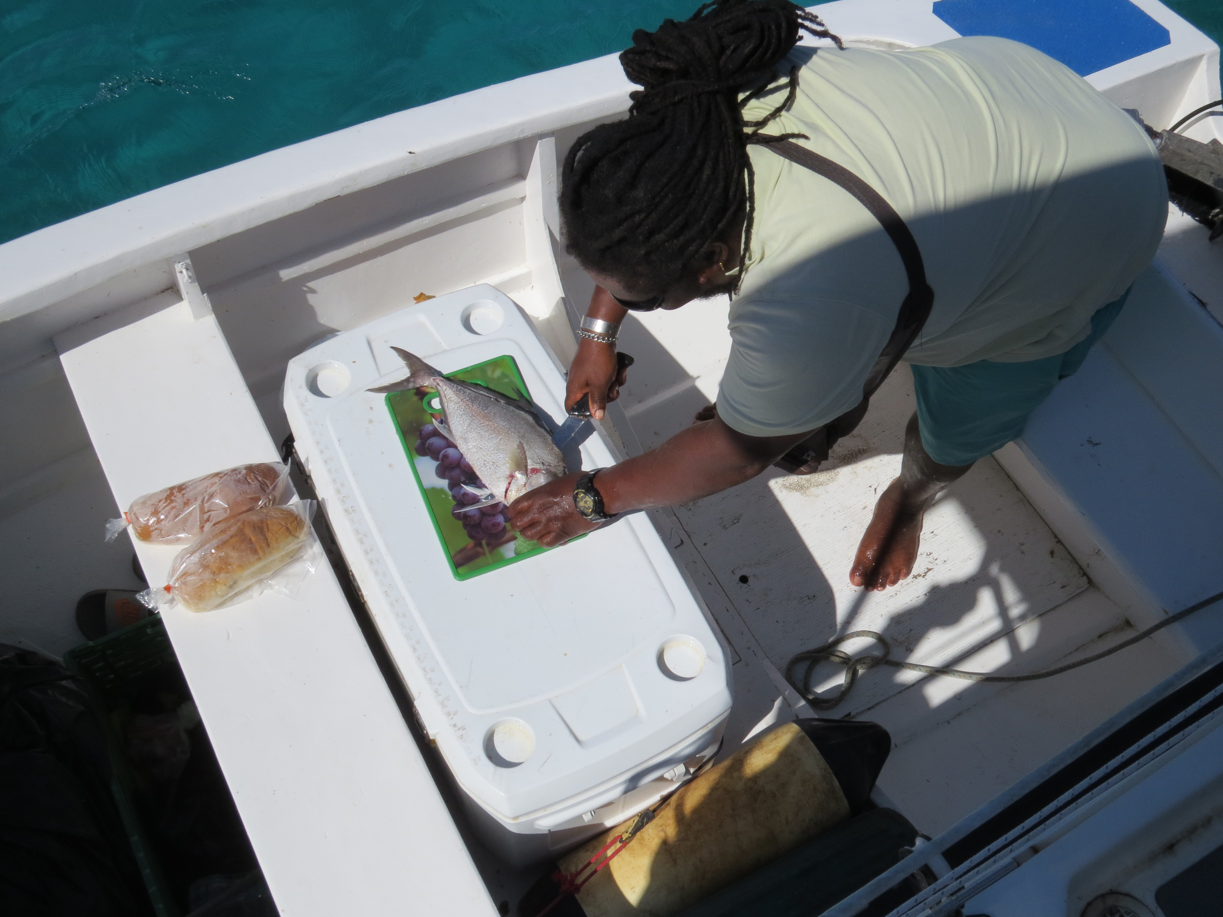 Boat boys pass by in their boats selling bread, fish, fruit and veggies.